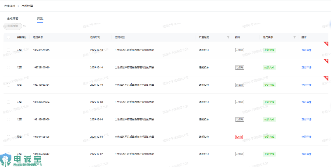 吴先生称,2025年7月24日至12月10日期间,店肆被平台累计惩罚108次,收取违约金高达56,500元。淘宝平台自2025年7月24日起,以“出售描述不符或质量存正在问题的商品”为由开出首笔千元罚单,此后五个月内累计生成108条违规记实。平台仅笼统援用“质量退款率过高”做为惩罚来由,但从未对涉及的具体订单或案例进行现实核查,也未出示任何可以或许证明商品存正在质量问题的检测演讲或消费者无效举证。