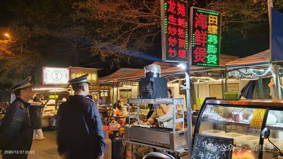 2025年12月27日,市城市办理分析行政法律大队正在滨江公园附近现场查抄夜宵摊从的油烟排下班做,督促其安拆合适国度环保尺度的油烟净化设备,指点摊从做好油烟净化设备的按期及清洗。